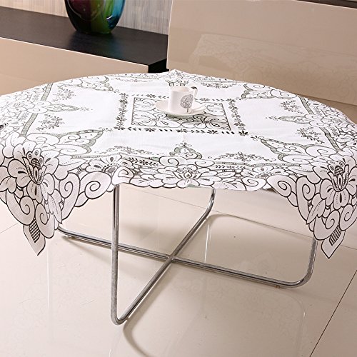 - Feature : Material: Burlap & Lace / A Simply Designed White Lace Tablecloth Perfect for Home Decor. / Square Table Cloth Demensions: 21-inch by 21-inch, 51-inch by 51-inch. / Rectangle Table Cloth Demensions: 47-inch by 67-inch, 55-inch by 82-inch. / Machine Washable.