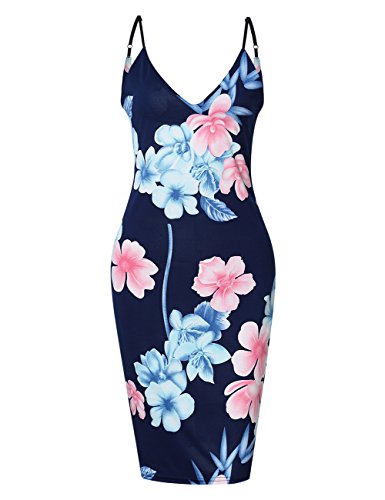 Our Deep v-neck bodycon midi dress with sleeveless,backless,adjustable straps;Sheath silhouette perfectly show off your charming curves;Classic floral pattern never out of fashion;Perfect pair with your high heels,sandals