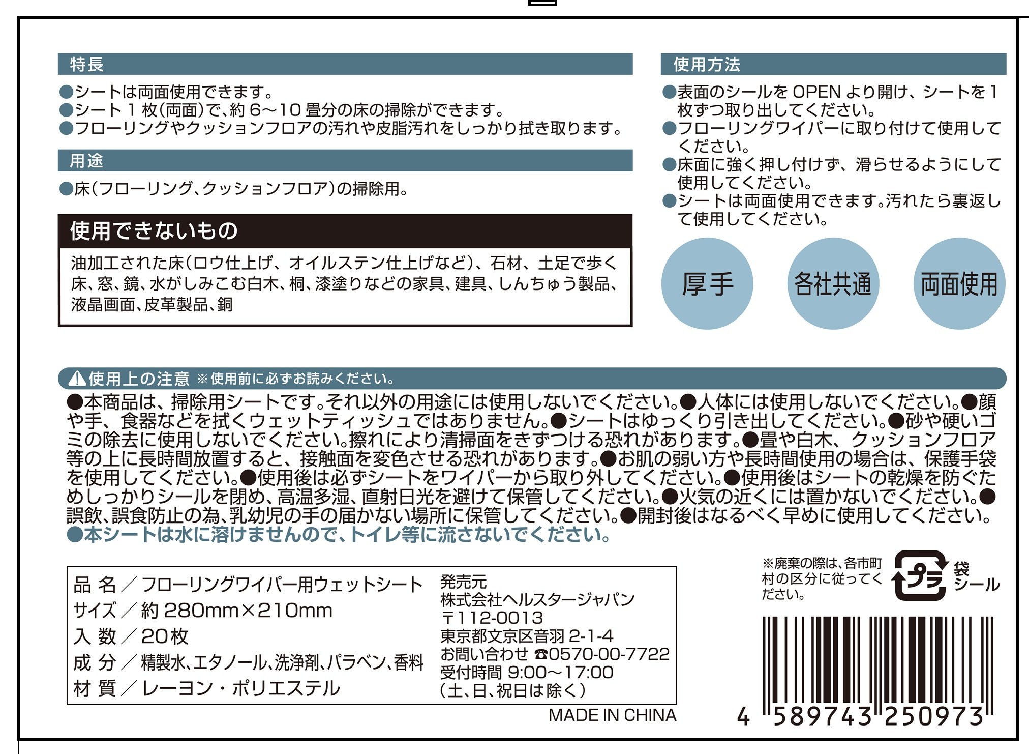 Because this sheet is not soluble in water, please do not flush to the toilet etc.