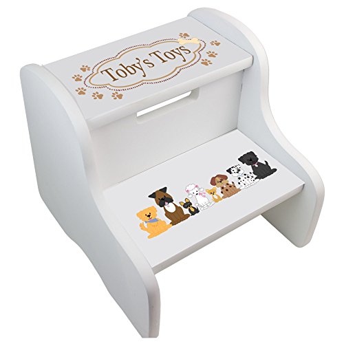-. Title : Personalized Brown Dogs White Two Step Stool