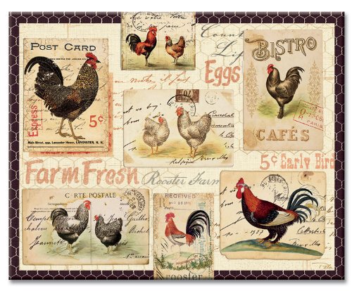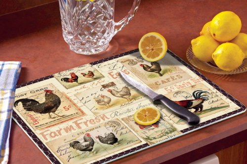 CounterArt Rooster Farm Glass Cutting Board, 15 x 12 Inches