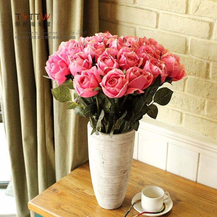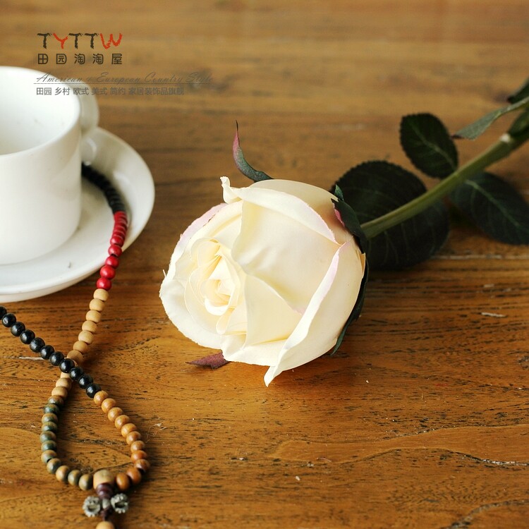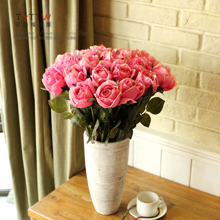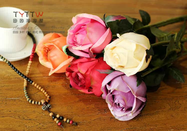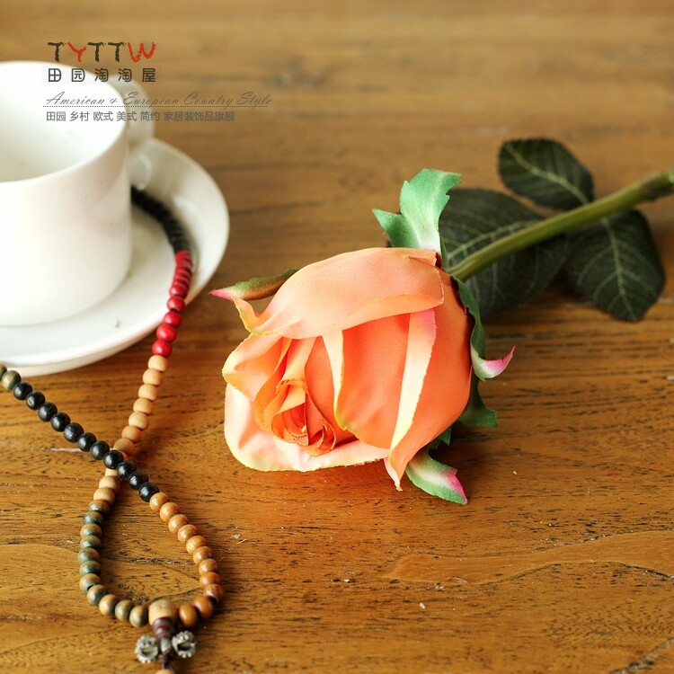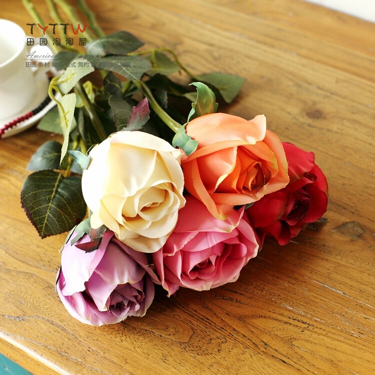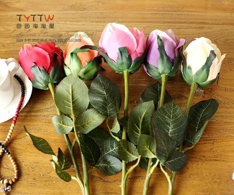 仿真饰品仿真花假花装饰花绢花人造花落地插花单只法国含苞玫瑰