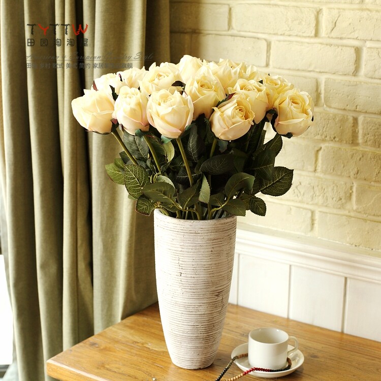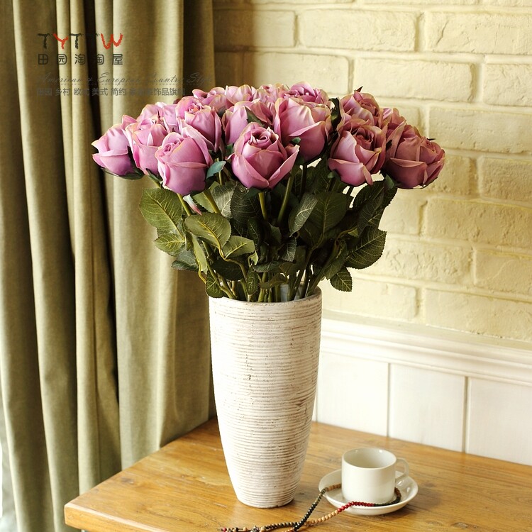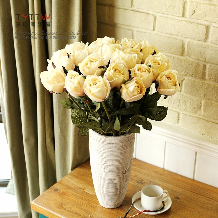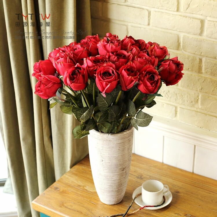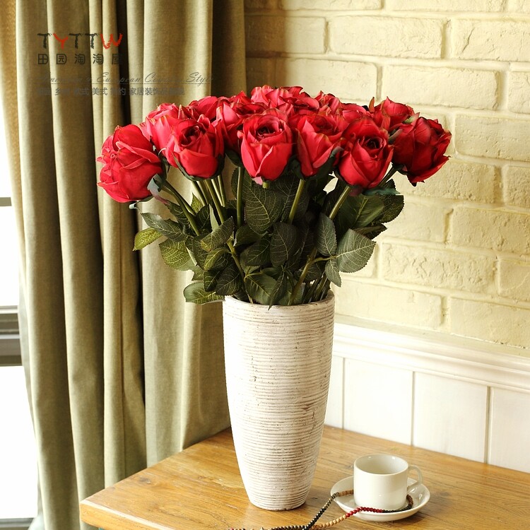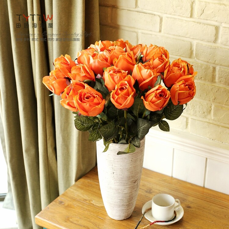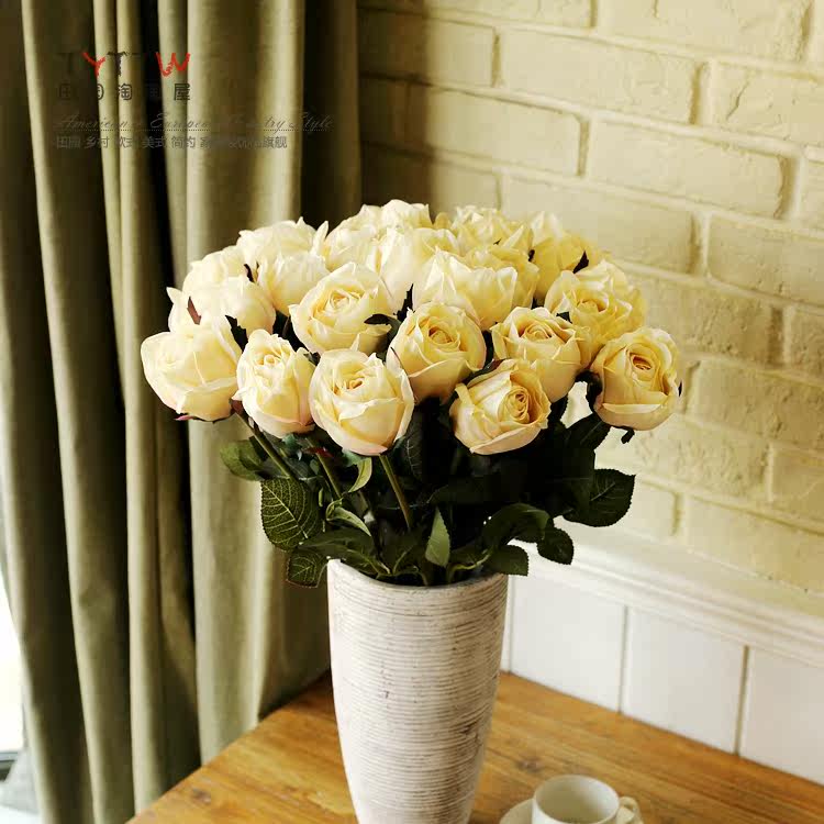 仿真饰品仿真花假花装饰花绢花人造花落地插花单只法国含苞玫瑰