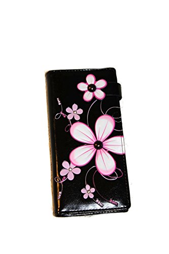 Product DescriptionThis funky pink flower wallet has plenty of room for coins, cards, cash, and even your checkbook0