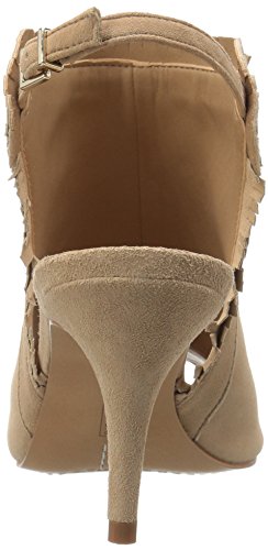 Product DescriptionPeep toe dress sandal with fringe detail and backstrap0