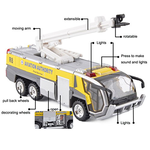 -. Binding : Toy -. Brand : Yepmax -. Feature : FIRE TRUCK MATERIAL: ABS / Metal-Zinc Alloy / Rubber / RUCK BODY SIZE: 7.6 X 1.9 X 2.7 inch(19.5 X 5 X 7 cm) / TOY FEATURES: Two Doors Openable(Fire doors on both sides can open) / Pull back toy / Flashing Lights and 4 Difference Sound /Moving Spray Water Arm " / Pull-back Classic Double-Decker Bus / Emulation Model for collection / Wonder gift ideas / Small parts contained, kids under 3 years must supervise by adult to play. -. Label : diyado -. Manufacturer : diyado -. MPN : 17WJ06-001 -. PartNumber : 17WJ06-001 -. ProductGroup : Toy -. ProductTypeName : TOYS_AND_GAMES -. Publisher : diyado -. Size : red -. Studio : diyado -. Title : Car toys Rescue Airport Fire Engine Truck Model Cars Toys for Kids