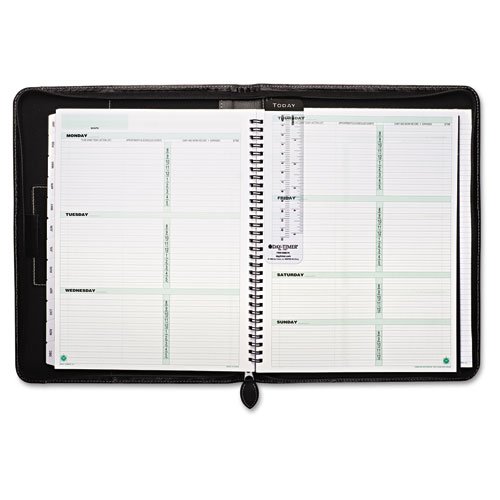 -. Feature : Be organized and eco-conscious. / Includes everything you need to begin planning: six-month undated weekly/monthly planner with 12 undated monthly tabs, address/telephone book, lined notepad, handy reference pages and a page locator. / Cover has an exterior pocket and zip closure to keep contents safe and secure. / Other features include: three interior vertical pockets to hold your wirebound system, one interior vertical pocket for loose papers, notepad pocket with an opening at both ends to accommodate right or left handed users and two pen loops.