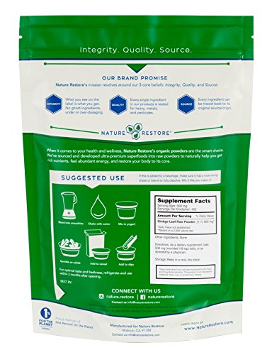 Nature Restore Organic Ginkgo Biloba Leaf Powder, 226 grams