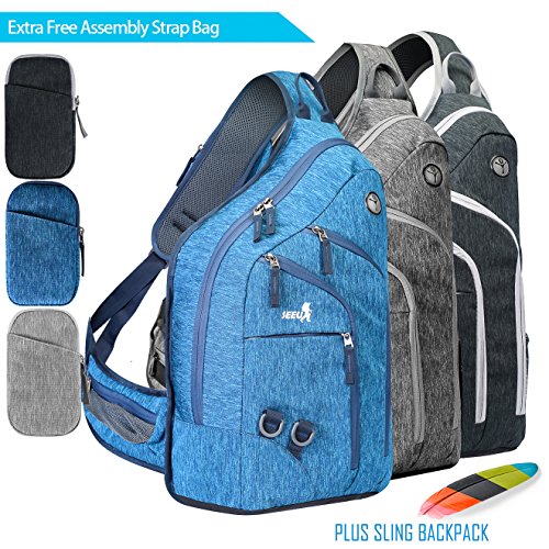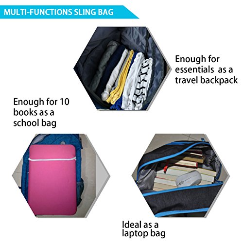 -. Feature : 28L Plus Large Capacity Sling Bag Backpack: This one strap backpack fill with surP.R.Isingly spacious main compartment, can carry all of your stuffs for outdoor sports, school, travel, business trip, and daily outing etc, good enough to take everywhere. It can hold plenty essentials than most without being too bulky. Oder it now can get a limited gift worth $9.8 portable strap bag! (Enough for iphone 6plus) / Sling Laptop Backpack with 6 SPECIAL FEATURES: 1) A headphone hole for you enjoy music while place the device in this one sling backpack. 2) The mesh pocket in the strap can fill some small items. 3) The mesh bottle pocket is enough for 3.2-in-diameter big-size water bottle. 4) The handle work as handbag when in hurry or shoulders are getting sore. 5) The layers can protect your laptop or ipad from scraching by other stuffs. 6)Two-direction zipper in the largest pocket. / Delicate Design Crossbody Backpack: Stress bearable mechanics design fits most people's body well, and allows the waist to distribute the press on the back effectively. The adjustable strap is comfortable across your shoulder, which can keep right place across your body all the time instead of moving over to your neck or to the front side. / Multiple Pockets Travel Sling Bag: 8 Pockets= 1 Spacious Pockets with 1 inner protecting layers + 3 front accessories pockets + 1 mesh pocket in the strap(perfect for iphone 6 plus)+ 1 mesh bottle pocket + a free assembly portable gift bag includes 2 pockets, enough for well stuffs organization with all these valuable pockets. / Well-Constructed Shoulder Bag: Any parts will hardly come apart and fade as time goes! Made of two layers polyester material, which is scratch-resistant and dirt-proof. The stitching and sewing is done very well sturdy with tough threads, no loose threading, any parts will hardly come apart! The metal zippers all pull nicely went up and down.