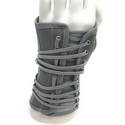 Criss-cross lacing provides uniform compression and support; the hook-and-loop fasteners permit easy, one-handed adjustment and closure.