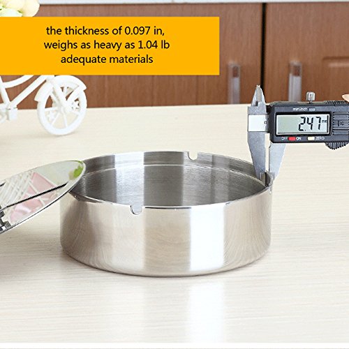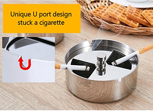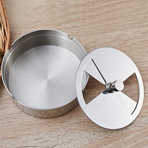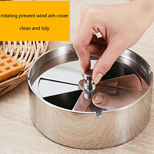 -. Feature : ANTI- HARDENED ASH/CRUD: Crafted from high quality 304, stainless steel with high-polish finish to prevent oxidation, denting on falling down and corrosion on usage. It's 100% recyclable and easy to clean. These premium materials and more make it resistant to hard Ash/Crud development. / TWIN SLIDE HOLE: It removable lid makes it easy and convenient for emptying and cleaning the ashtray. There are two slat holes on the cover which can be closed and open with zero restriction providing access to multiple smokers simultaneously. / DURABLE & STRONG: Because it is made from 304 stainless steel material which constitutes 18% chromium and 8% Nickel makes it a very strong heavy duty ashtray, it sends out attractive metallic lustre and scratch resistant. Its durability and uniqueness will stand the test of time making it a perfect accessory for smokers and smoking environment. / ENHANCE SMOKING ENVIRONMENT: Reduce unpleasant smell of smoke with it specially designed dimension which gives no room for smoke or smell to permeate out through the spin mechanism. Indeed, a superb elegant accessory. / AIR TIGHT: This stainless steel ashtray is built to be air tight, preventing smoke and unpleasant smell to permeate your home, bar, outdoor stand and environment. Protect your children and second hand smokers from inhaling odour. This ashtray will effectively prevent mass (smoke) rapid diffusion.