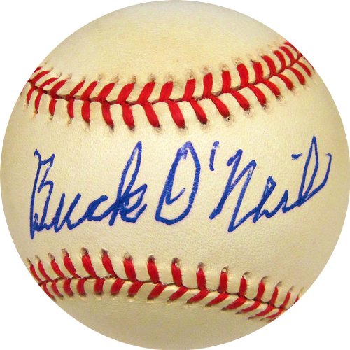 - This is a Buck O'Neil Autographed 50th Anniversary Jackie Robinson Baseball. Signed in blue pen across an official American League Gene Budig baseball. Item is authenticated by Hollywood Collectibles.