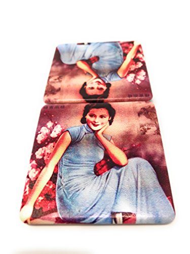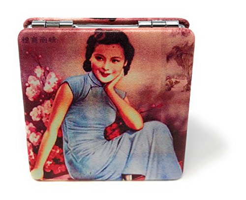 Purse Pocket Mirror - Vintage Shanghai Lady - 2 in 1 With 2X Magnification