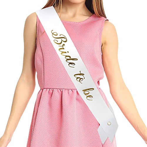 Elegant Bride To Be Sash - Bachelorette Party & Bridal Shower Favorite (White Sash with Gold Lettering)