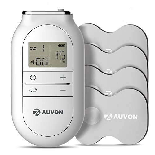 -. Feature : EFFECTIVE PAIN RELIEF. AUVON TENS units could be used for temporary relief of pain associated with sore and aching muscles in the shoulder, waist, back, arm, leg and foot, due to aging or strain from exercise or normal household and work activities. It produces low-frequency electrical pulse and transmit that through to the underlying peripheral nerves by electrodes, in order to reach the therapeutic aim for pain management and temporary pain relief. / COMPACT & VERSATILE. Professional TENS has never been so easy to be taken with you wherever you go! Our TENS machine is 50% smaller and lighter han other traditional electric pulse massagers on the market. This device measures 7.86 in (HL) x 4.32 in (W) x 1.18 (D). This makes it much shorter than iPhone X and iPhone 8 on the height and width measurements. With the inlcuded belt clip, you can attach it to your belt for a relaxed and comfortable walking. / FDA 510K & SAFE. AUVON TENS muscle stimulator has already passed the FDA Certification and 100% durg free. No worries about the troubles from taking medicine and having side effects. In terms of the conductive pads for TENS unit, critical skin sensitization, skin irritation, cytotoxicity test passed. / HIGH QUALITY TENS UNIT PADS. Compared with other traditional button-style electrode pads, our TENS pads are made of industry leading high quality gel, with which the reusable times of the pads could be 4 times than most other products and reusabled up to 60-80 times if properly used! Once your pulse therapy finishes, simply winding the pads on the premium pad holder for easy and scientific storage. / What You Receive: 1 x Low Frequency Muscle Stimulator, 4 x TENS Electrode Patches, 2 x Lead Wires, 1 x User Manual, 1 x Electrode Pad Holder, 1 x Happy Card, our 12-month warranty, and friendly customer service. (2 x AAA batteries needed but not included)