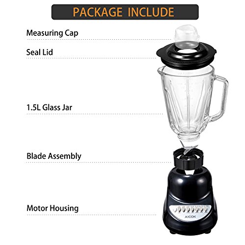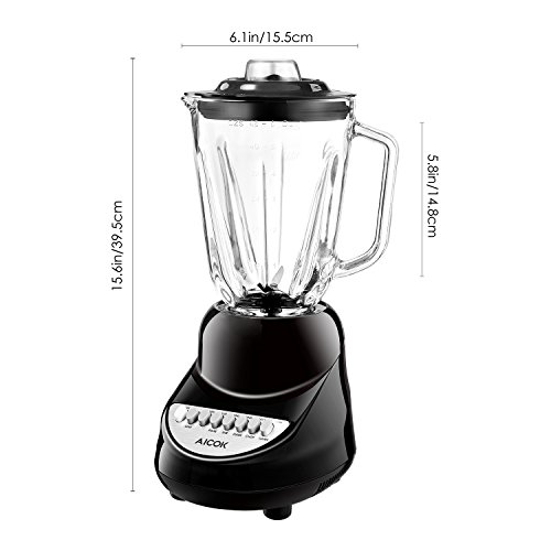 Studio : Aicok Publisher : Aicok Product Description Specifications ? Color: Black ? Dimensions: 6.1 x 5.8 x 15.6 inches ? Dishwasher Safe: Yes ? Material: Glass Cup ? Number of Cups: 6 Cups 50oz ? Pulse: Yes ? Warranty: Lifetime ? Wattage: 450 W