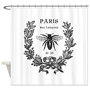 BMALL PARIS BEE Shower Curtain - Standard White with Hooks Bathroom Decor 60"(w) x 72"(h) Inches