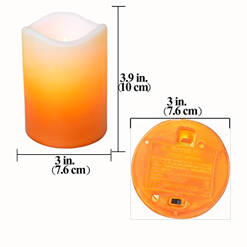 - New Battery-powered LED Light Candles Size - Heigh: 10cm (3.9-inch), Diameter: 7.6cm (3-inch); One set has 2pcs candles. Falmeless heatless candles, safe and no fire risk.