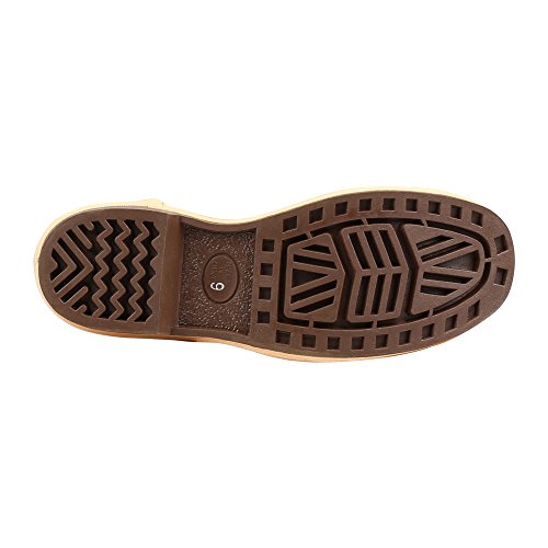 Studio : Sperian Protection Group Publisher : Sperian Protection Group Binding : Tools Home Improvement Product Description The Chevron self-cleaning sole and heel offers a flat, surface-tosurface tread pattern for increased slip resistance on slick surfaces and requires virtually no clean up. Both steel toe and plain toe constructions provide roomy comfort and protection. 100 percent waterproof. Seamless, dipped construction makes it soft and pliable in harsh conditions. Breathe-O-Prene insoles provide shock absorption and pull moisture away from the feet. Tough, comfortable fabric lining. Chevron sole and heel. Steel toe meets ASTM F2413-05. Meets electrical hazard requirements of ASTM F2413-05. Available in copper tan color and size-8. 0