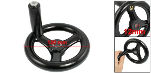 uxcell Black 12mm x 120mm 3 Spoke Hand Wheel w Revolving Handle