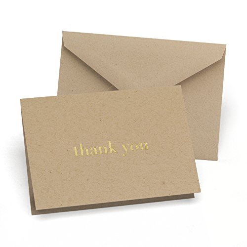 Hortense B. Hewitt 50 Count Kraft Natural and Thank You Cards, Gold