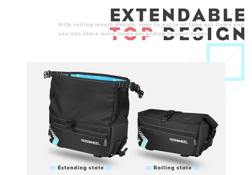 Features: - 6L large capacity bag with extensive pocket meeting your different storage demands - Multifunctional design, with the handle and adjustable strap, it can be used as a single-shoulder bag or handbag - Two side pockets and extendable top design, after being extended, the bag will change into larger rear pack - Made of water-resistant cloth with 900D oxford fabric, durable and wear-resistant - Padded lining for reducing vibration and protecting your items effectively - U-shape zipper closure, convenient to take items out and put items in - With reflective strap, increasing the safety when cycling at night - Quick-release nylon loops to fix the bag, easy to install and remove - Suitable for most kinds of bicycles such as road bike and mountain bike, etc.