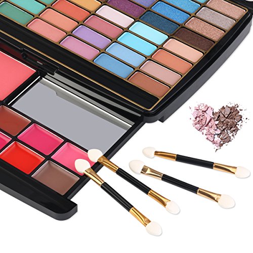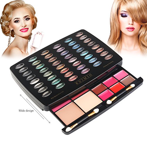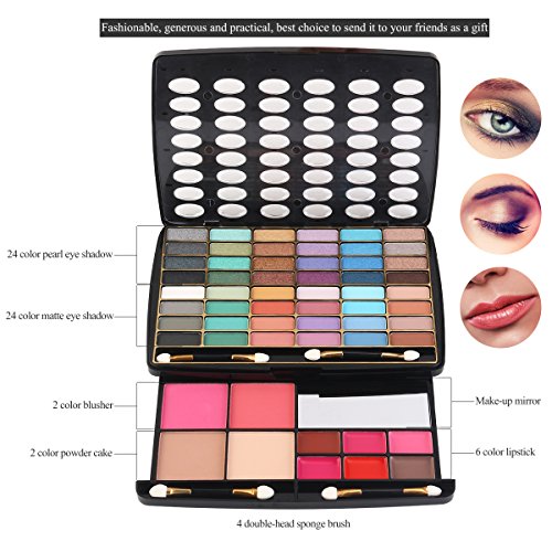 A GREAT, WELL-STOCKED KIT - Includes an eyeshadow palette with 48 colors (24 shimmer & 24 matte), 2 blushes, 2 face powders and 6 cream lip glosses. Applicators and a mirror are also included.