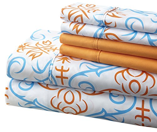 Spirit Linen, Inc Hotel 5th Ave Twin Coral Floral 4 Piece Milan Home Sheet Set