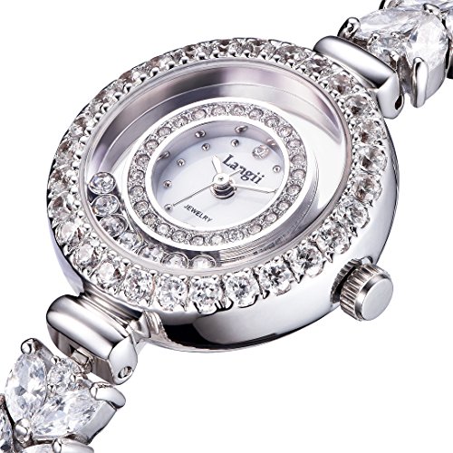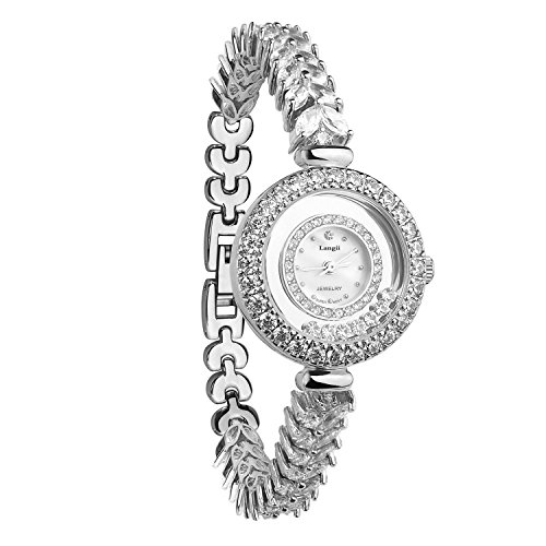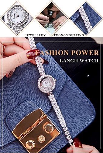 Langji Women's Crystal-Accented Silver-Tone Bracelet Watch Jewelry Bracelet Wrist Watches Lgrh5308b17