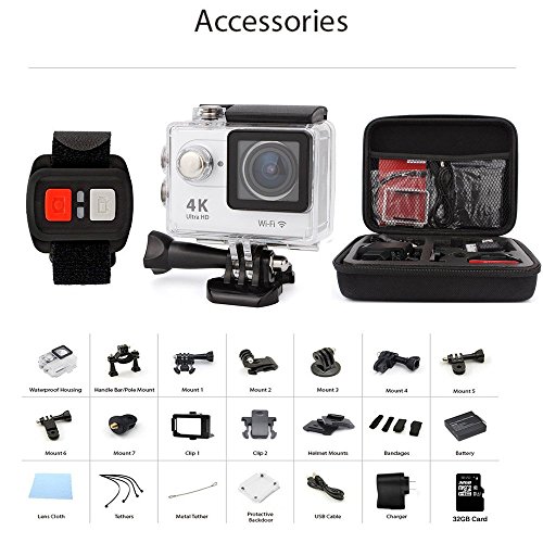 Sport Camera ,AEDILYS 4K HD Action Camera ,Wrist 2.4G Wireless RF Remote Control , WiFi 2inch 170° Sports Video, lens Helmet go waterproof pro camera +32GB Card+Camera Bag -White