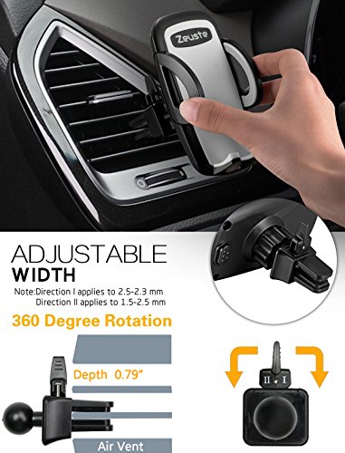 -. Title : Car Mount,Zeuste Universal Air Vent Cell Phone Holder for Car [360 Degree Rotation Car Phone Mount for Smartphone/GPS Device from 1.9in to 3.7in in width][Grey]