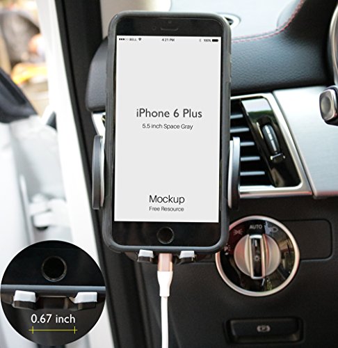 -. Feature : Adjustable Extension Arm Design--Car phone mount suitable for width size from 52mm to 95mm smartphone or media devices / Broad Width compatibility--Car mount compatible to phones like iPhone 6, 6 Plus, 5S, 5C, 5, 4S, 4, iPod, Samsung Galaxy S5, S4, S3, Note 4, 3, 2, HTC, LG, Sony, Motorola and other cellphones or smartphones. / 360 Degree Rotation--Top Quality 360 Rotatable Universal Air Vent Car Mount Cellphone Holder Cradle, Allows multi-axis adjustment for infinite viewing angles,The base of the mount remains fixed into the air vent of your car tighten to guarantee that your smartphone will always stay in your preferred position. / Easy Install Design--Provides hands-free, heads-up mounting of your device for easy viewing,Quick and easy installation on your dash or air outlet / Security Protect Design--The meterial of padded cellphone holder cradle is TPU,with cushioned side grip embedded Extention arm,to protect your device from scratching or Dropping.