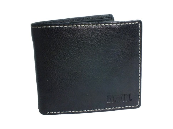 エドウィン EDWIN 二つ折り 短財布 小銭入れあり  商品仕様:(約)H10×W11.5×D2mm レザー 開閉:オープン、小銭入れ×1(ホック開閉式)、札入れ×2、カード入れ×10、ポケット×3、カラー:ブラック ボックス