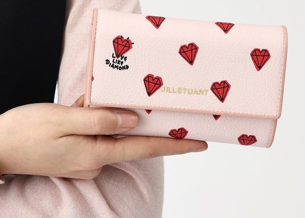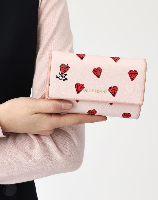 질 스튜어트만의 하트 다이아몬드 패턴으로 유니크한 외관을 연출한 중지갑입니다.