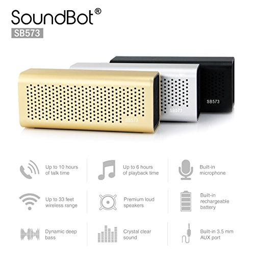 -. Title : SoundBot SB573 Bluetooth Wireless Speaker for 6hrs Music Streaming & 10hrs Hands-Free Calling w/ Premium Aluminum Tough Built Finish, 5W + 5W 40mm Driver Speakerphone, Built-in Mic, 3.5mm Audio Port, Rechargeable Battery for Indoor & Outdoor Use