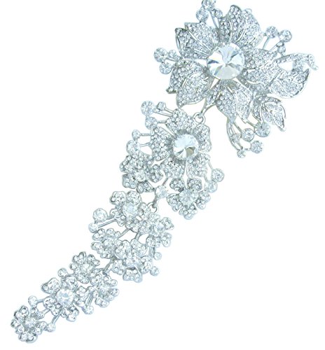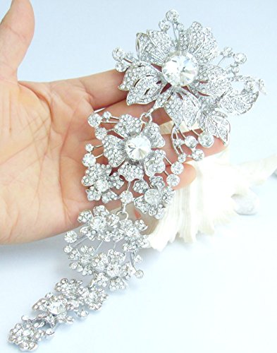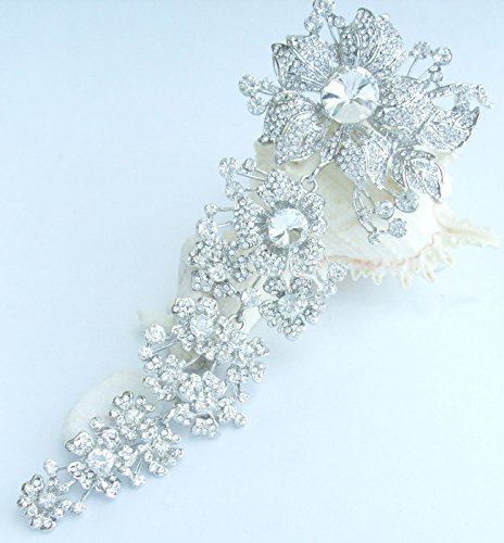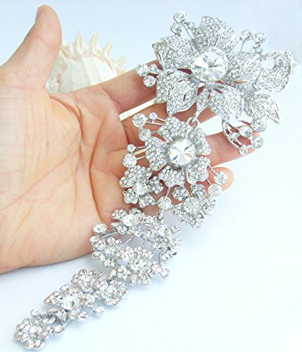 -. Feature : Material: Zinc Alloy (Silver Tone), Austrian Crystal. / Main stone color: clear. / The size of the brooch: 18.5cm (7.28") Length by 8.5cm (3.35") Width. / Wrapping: Come with some spare crystals, and a gift box or favor bag (depend on product size). If you need assistance please contact us. / Have a hook on the back, it can be used as a pendant; the crystals are glass, there is no acrylic crystals, if you like this color and the style I'm sure you will love it.