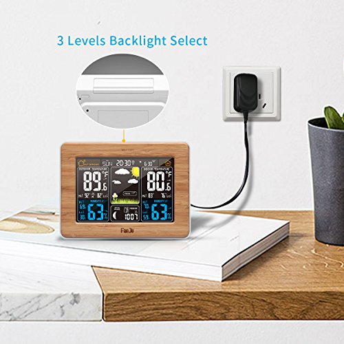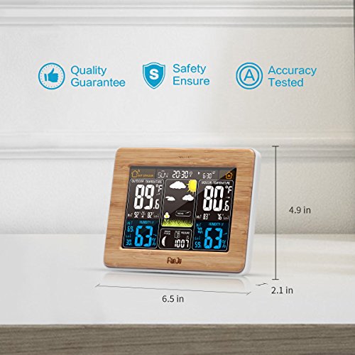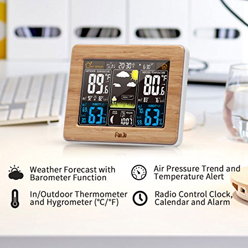 ★All- in -One Functions -- Color weather forecast; indoor/outdoor thermometer and hygrometer; MAX/MIN temperature and humidity display; Barometric pressure; WWVB radio control clock; Moon phase; daily alarm and snooze function; 3 levels backlight select. Please find out more details in Product Description.