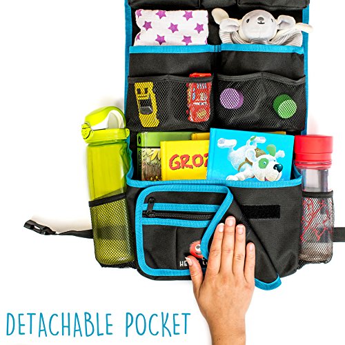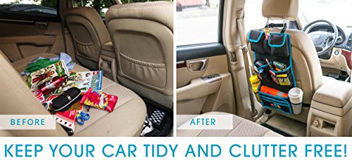 ORGANIZE YOUR CAR & KEEP IT TIDY: Forget about having to battle a sea of toys, paper wraps, cups and dirty used wipes and all the clutter, when you have to put your kids in the back seat of your car safely and secure. Our backseat organizer has 15 pockets of different sizes plus a detachable Velcro wallet that will hold all your things in place, keeping the essentials right where they belong and still keeps leg space free.