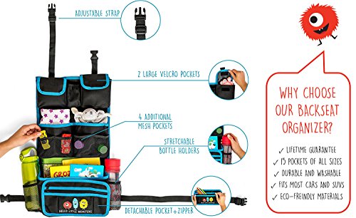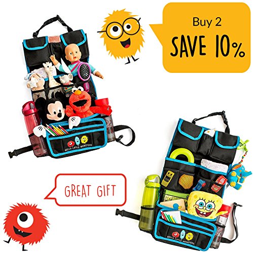 Backseat Car Organizer by Hello Little Monsters - Kids Toy Car Storage - Travel Accessories for Baby - Child Car Seat Protector - Perfect for Baby...