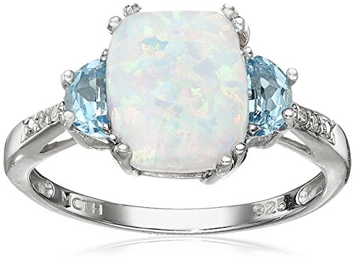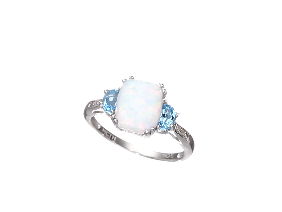 Sterling Silver Simulated Opal, Blue Topaz, and Diamond Accent Ring, Size 7