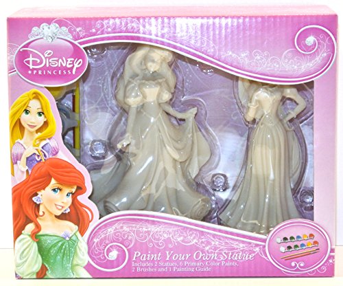 -. Binding : Toy -. Brand : Disney -. EAN : 0049022791459 -. Feature : Includes 2 statues, 2 brushes, and 6 primary color paints / Painting guide included! / Safe and Non-Toxic / Perfect for girls ages 5+ -. IsAdultProduct : 0 -. Label : Disney -. LegalDisclaimer : NOT A TOY FOR ART USE ONLY -. Manufacturer : Disney -. MPN : 1001704811 -. PackageQuantity : 1 -. PartNumber : 1001704811 -. ProductGroup : Toy -. ProductTypeName : TOYS_AND_GAMES -. Publisher : Disney -. Studio : Disney -. Title : Disney Princess Paint Your Own Statue - Rapunzel and Ariel -. UPC : 049022791459