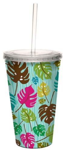 Tree-Free Greetings cc33505 Playful Monsterleaves by Carolyn Gavin Artful Traveler Double-Walled Cool Cup with Reusable Straw, 16-Ounce, Multicolored