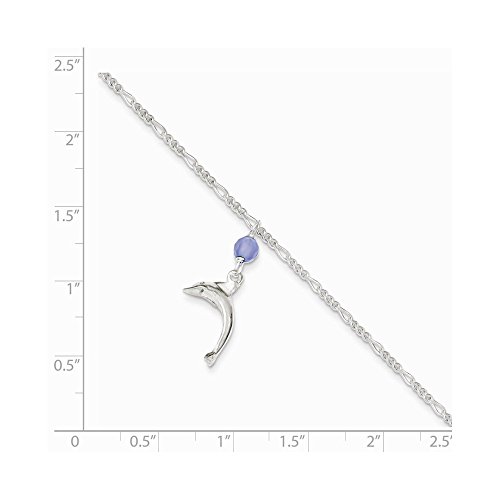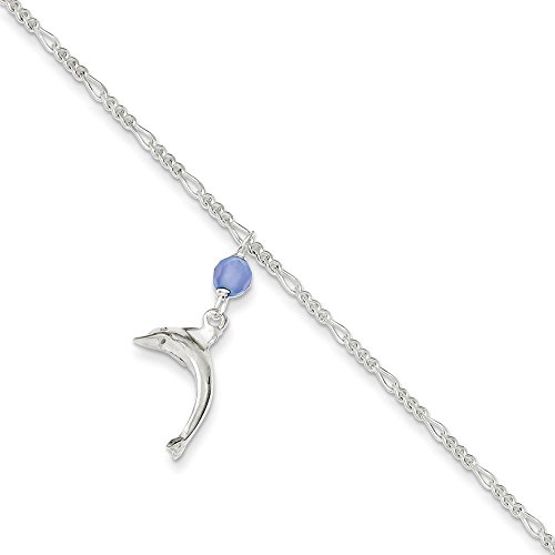 -. Title : Sterling Silver Blue Quartz Bead & Dangling Dolphin Figaro Anklet 9 Inches