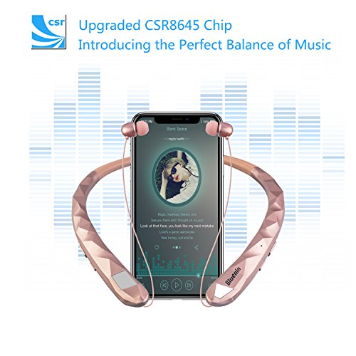 -. Feature : A JEWELRY-LIKE HEADSET: 2017 Newest Jewelry-like design neckband and unique polish surface ,shine like a beautiful diamond on your neck. Around-the-neck wearing style with body-contoured Fit. Made of ultra-light silicon, great for easy carrying and all day comfort. / AUTO RETRACTABLE EARBUDS: You could pull the retractable wire to the length you want it be when listening to music/answer calls and store the wire in the special designated spot by double pulling it when no use. / ULTRA LONG WORKING TIME: Built-in 150mAh rechargeable Li-Polymer battery provides up to 16 hours play time with a single charge. Battery level can be displays on both iPhone and Android Phone status bar, so you can quickly see the battery status. / Hi-Fi TUNES&HANDS FREE CALLING: Featured with CVC6.0 noise reduction technology, Bluetooth 4.1 and CSR 8645 chip, BBH-919 filters out circuit noise to guarantee high quality sound and clearer voice for calls, you can control all functions of music and calls easily via the buttons on the headset. / A RISK-FREE PURCHASE: Whether it's your first Osten Design purchase or you're back for more, rest assured that we're in this together: All Osten Design products are backed by our 12-Month replacement warranty. Please contact Seller firstly when having problem.