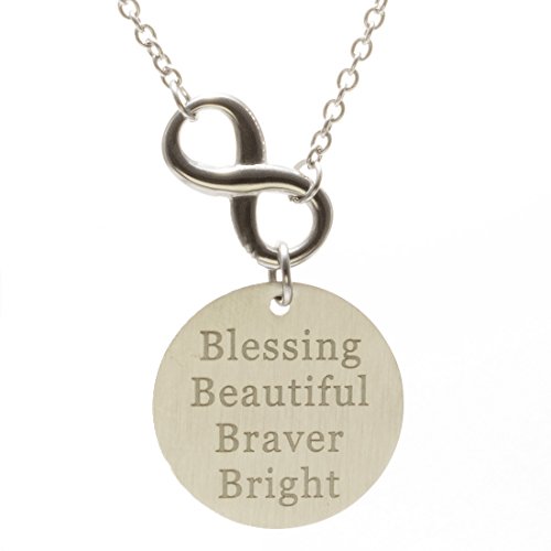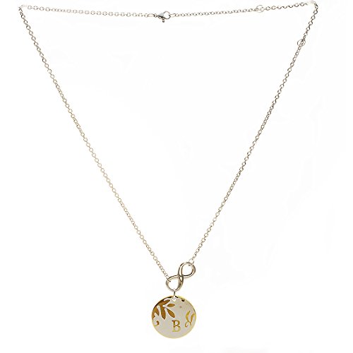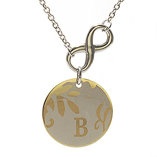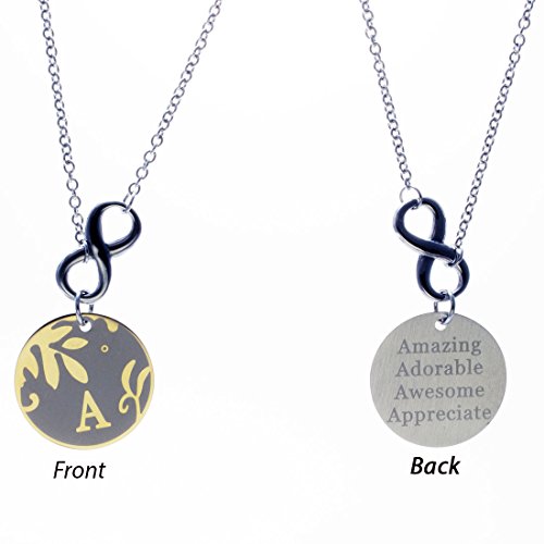 -. Feature : Infinity symbol with initial round stainless steel pendant necklace / Each Letter: A, B, C, D, E, G, H, J, L K, M, N, R, S & T with representative words engraved on the back / womens initial pendants Unique style alphabet necklace with special meanings / A fine stainless steel 20" chain included / The round pendant size is 1" diameter.
