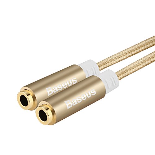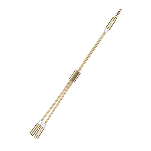 -. Title : Y Splitter 1-to-2 Stereo Audio AUX Cable, Premium Audiophile Grade One Male to Two Female 3.5mm Jack Adapter Braided Cord w/ Gold Plated Plugs (10 Inches)