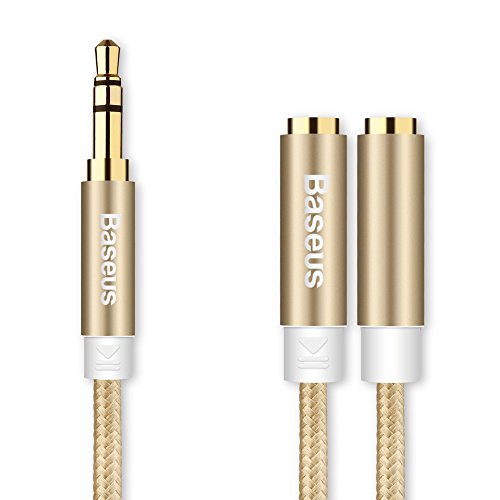 -. Feature : Allows to connect 2 headphones or speakers simultaneously to share music, video voice in stereo format with your lover, family or friend / Gold plated connectors and pure copper wire reduce corrosion & oxidation, change the connection impedance of your audio connection and greatly affect the sound quality / Compatible with ALL devices equipped with standard 3.5mm audio jack such as iPod, iPhone, iPad, Kindle Fire tablets, Samsung Galaxy smartphones and tablets, Google Nexus smartphones and tablets / Cable length 26cm/10 inches with durable braided cord design; 1 year warranty