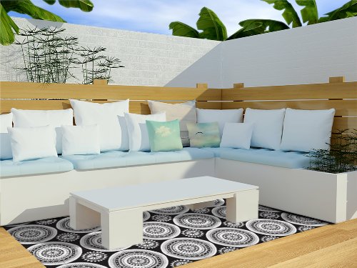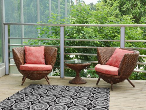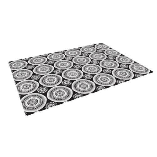 Kess InHouse Nandita Singh "Circles" Black White Indoor/Outdoor Floor Mat, 4-Feet by 5-Feet