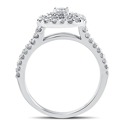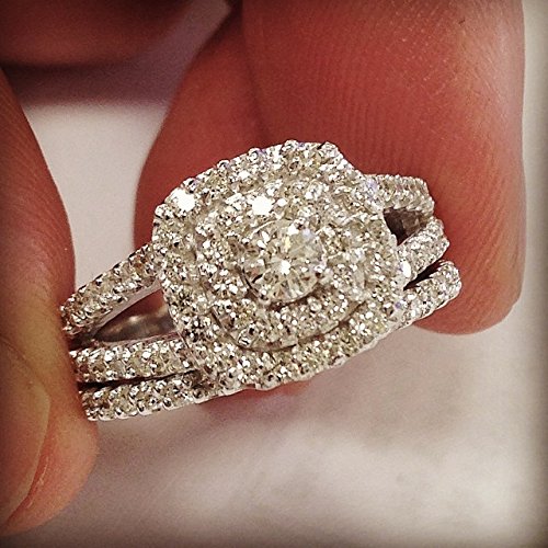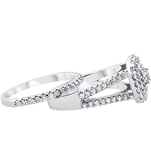 -. Title : 1 1/10ct Cushion Halo Diamond Engagement Wedding Ring Set 10K White Gold