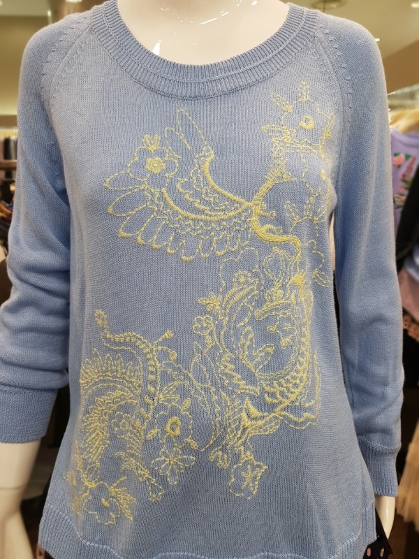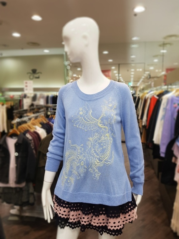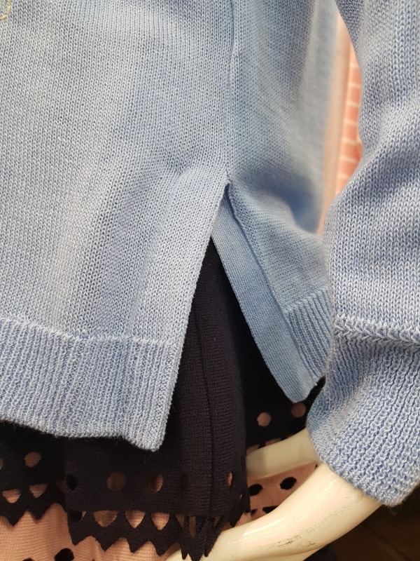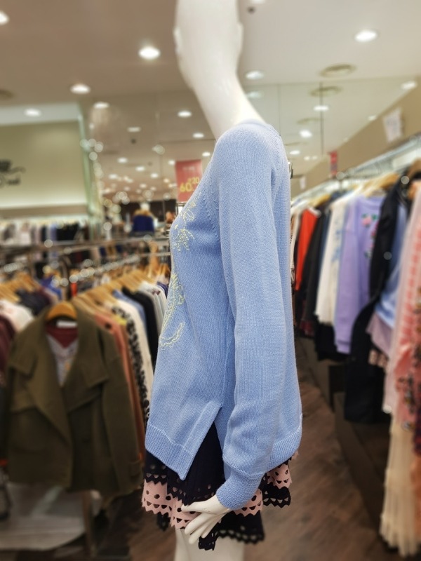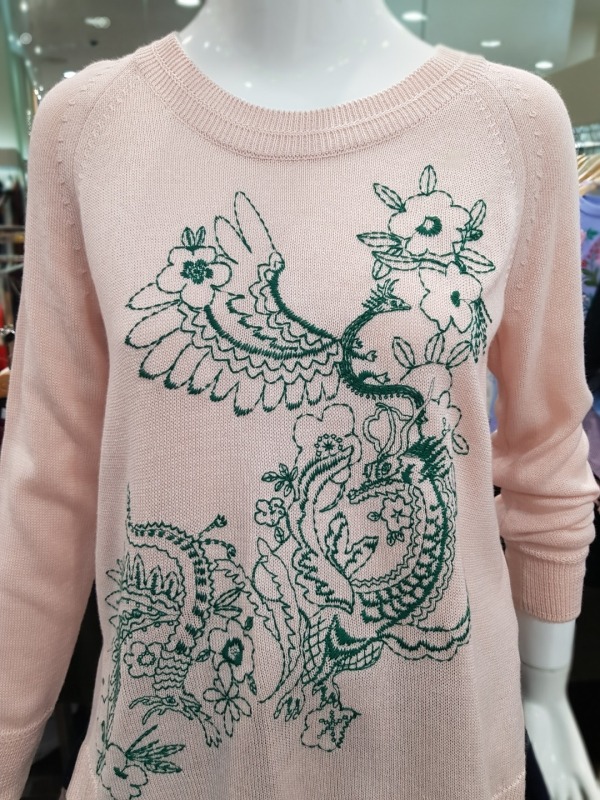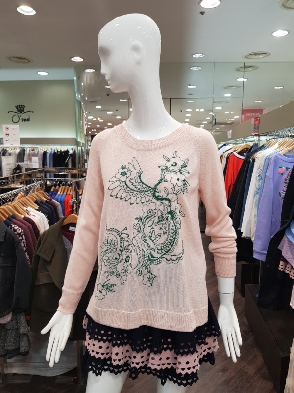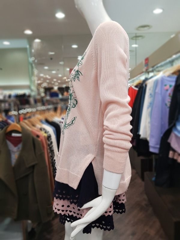 핏감이 여유있는 니트로 앞에 자수가 있어 단색 점퍼안에 입기 좋은 니트입니다.옆트임이 있어 옆라인도 이쁘게 떨어지는 아이템 입니다.